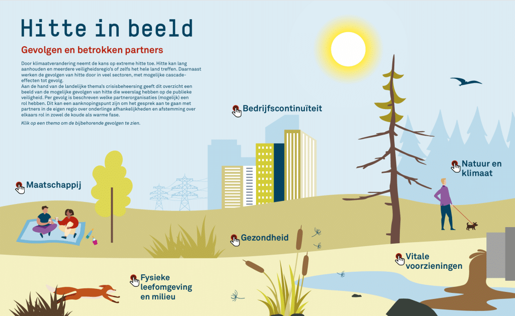 Door bestaande kennis en producten opnieuw onder de aandacht te brengen, versterken we het gevoel van urgentie én handelingsperspectief. Bijvoorbeeld deze publicatie met een indicatie van de mogelijke gevolgen van hitte op de publieke veiligheid.