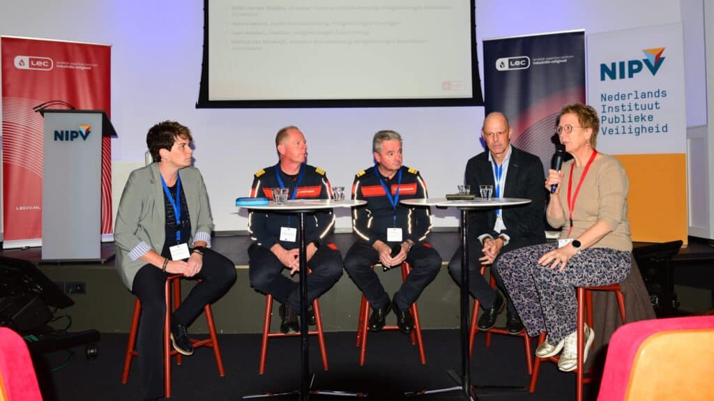 Onderdelen van de speech van Anink kwamen terug in het netwerkgesprek met Edith van der Reijden, Hans Foekens, Léon Houben en Wilfred van Randwijk als vertegenwoordigers van hun samenwerkingsverbanden. In het gesprek klonk een gezamenlijke oproep om meer samenwerking tussen de taakgebieden industriële veiligheid en omgevingsveiligheid. Noodzakelijke samenwerking in een tijd waarin de transities zich opstapelen en risico’s en dreigingen van uiteenlopende aard toenemen, terwijl Nederland voor grote uitdagingen staat op het gebied van woningbouw, energietransitie en economische ontwikkeling. Een knelpunt is dat het beleid versnipperd is en dat er heel veel partijen over gaan. De gezamenlijke oproep: laten we elkaar meer opzoeken. Het taakveld industriële veiligheid heeft behoefte aan concrete input vanuit de omgevingsveiligheid.